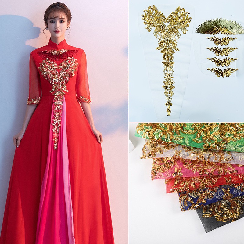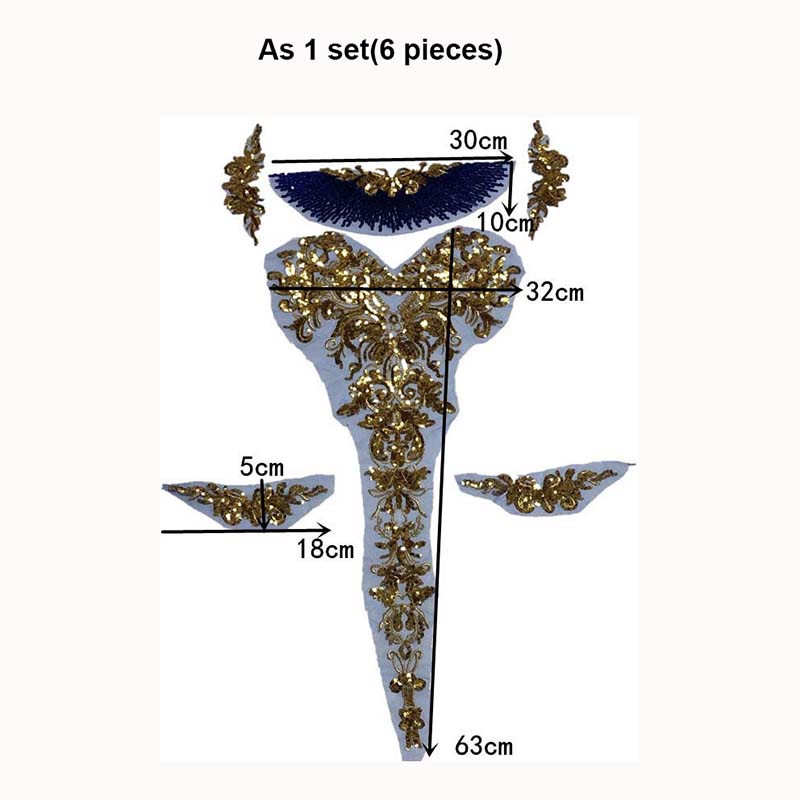 แผ่นแพทช์ ปักเลื่อม สีทอง ลายดอกไม้ 3D สําหรับชุดแต่งงาน 6 ชิ้น ต่อชุด