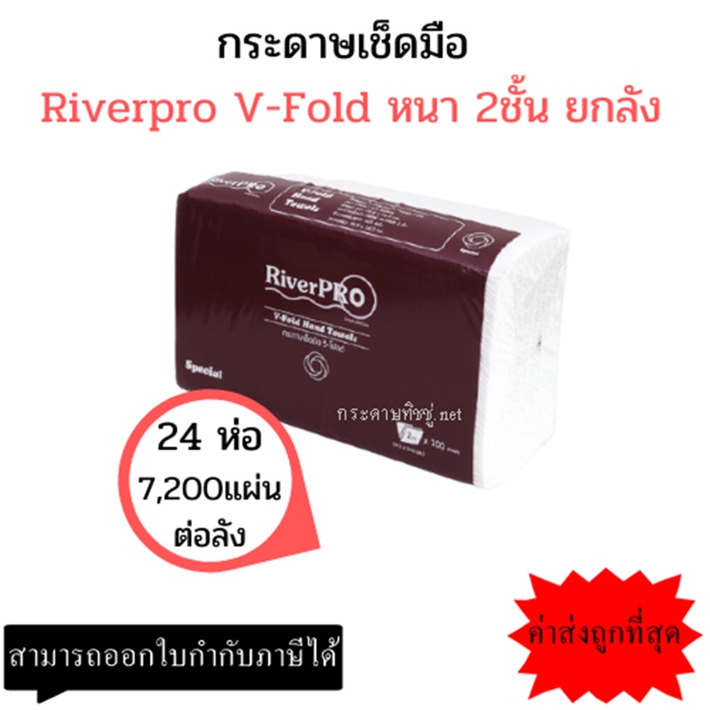 (ยกลัง) กระดาษเช็ดมือ RiverPro แบบแผ่น วีโฟลด์ 2 ชั้น 300 แผ่น x 24ห่อ