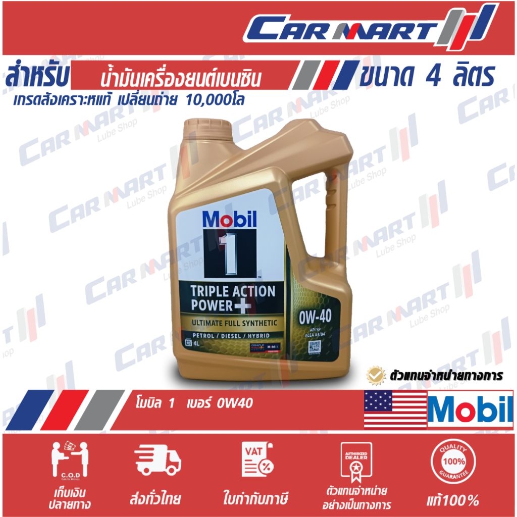 แท้💯ส่งไว🔥 MOBIL 1 โฉมใหม่!! น้ำมันเครื่อง เบนซิน สังเคราะห์แท้ 0W40 / 5W30 / 5W50 ขนาด4L