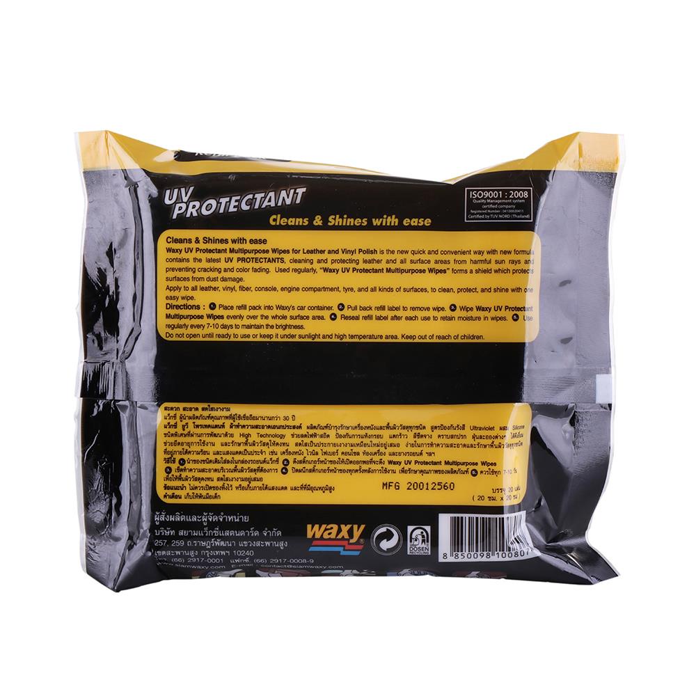 WAXY ผ้าเปียกบำรุงรักษาเครื่องหนังแว็กซี่ ยูวีและพื้นผิววัสดุทุกชนิด (แพ็ค 20 แผ่น)