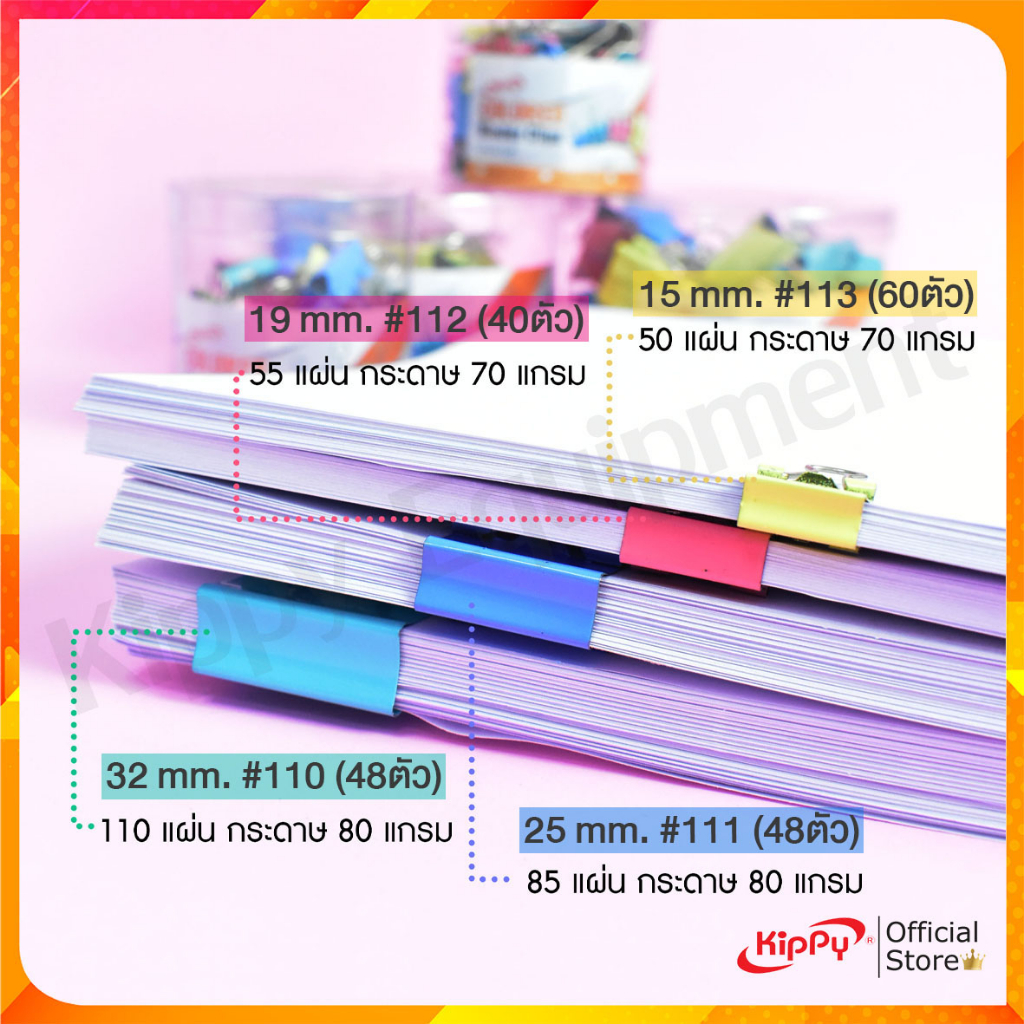 คลิปหนีบ สีพาสเทล KIPPY คละสี (15mm .19mm. 25mm. 32 mm.) ที่หนีบกระดาษ คลิปหนีบเงิน ที่เก็บสายไฟ ที่เก็บสายชาร์จ