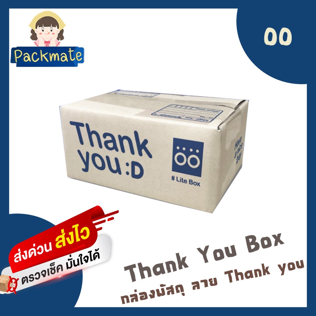 [ แพ็ค 20 ใบ ]กล่องพัสดุ Lite Box กล่องไปรษณีย์ Thank you เบอร์ 00 [ ขนาด 9.7 x 14 x 6 cm. ]
