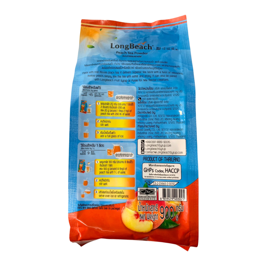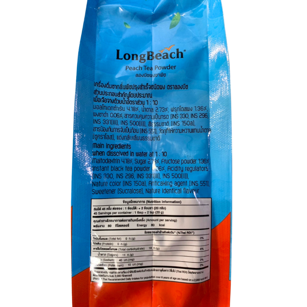 ผงชงชาพีช ตราลองบีช 900 กรัม ชาพีช Longbeach Peach Tea ชา ผงชง ผงชาพีช