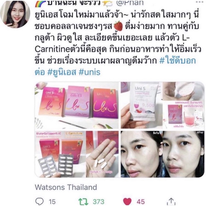 Uni S ฮิต!ขายดีมากๆ วิตมินผิวปังๆ L-250 30 แคปซูล วิตมินขาวใสตัวดัง ช่วยให้ผิวเรียบเนียน นุ่ม ชุ่มชื่น ริ้วรอยแลดูจางลง