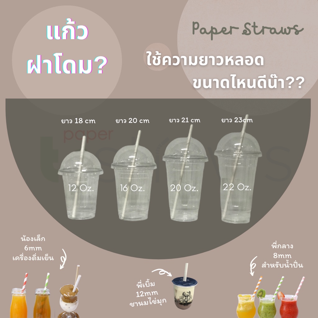 [ราคาลัง] หลอดกระดาษ 8mm ยาว 19.7cm ราคาส่ง1000ชิ้น สีพื้น สำหรับน้ำปั่น สมูทตี้ ย่อยสลายได้ 100% เป็นมิตรต่อสิ่งแวดล้อม