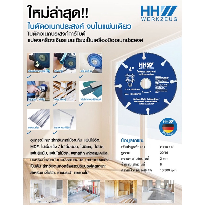 ใบตัดอเนกประสงค์ ฟันคาไบร์ ปูน,เหล็ก,ไม้,สแตนเลส,PVC ฯลฯ ขนาด 4นิ้ว HH WERKZEUG (HHW)
