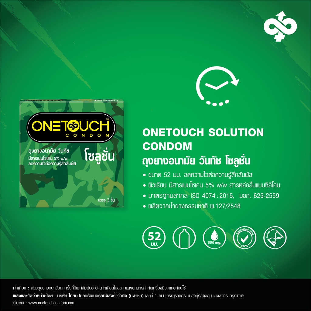 Onetouch ถุงยางอนามัย ขนาด 52 mm. รุ่น โซลูชั่น 1 กล่อง 3 ชิ้น
