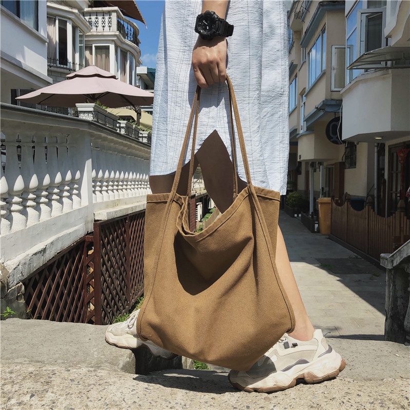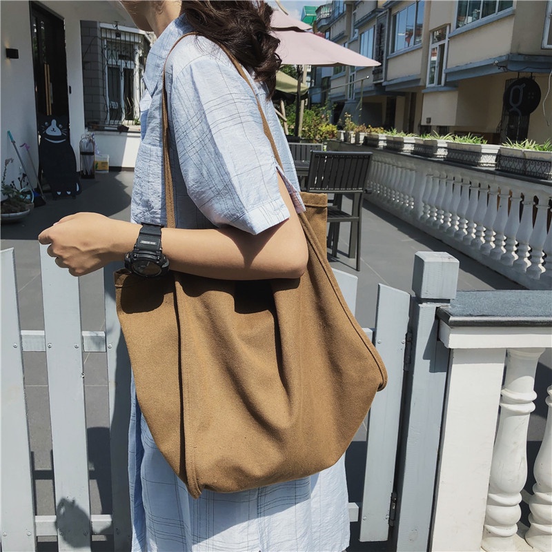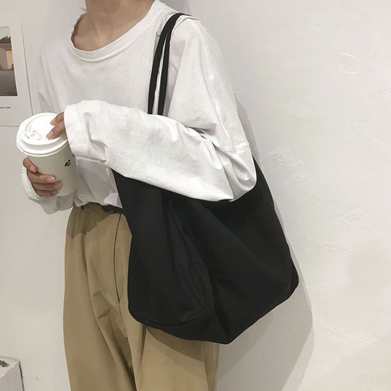 Yogodlns แฟชั่นผู้หญิงผ้าใบ Totes กระเป๋าสไตล์เกาหลี Simple Art นักเรียนกระเป๋าสะพายความจุขนาดใหญ่