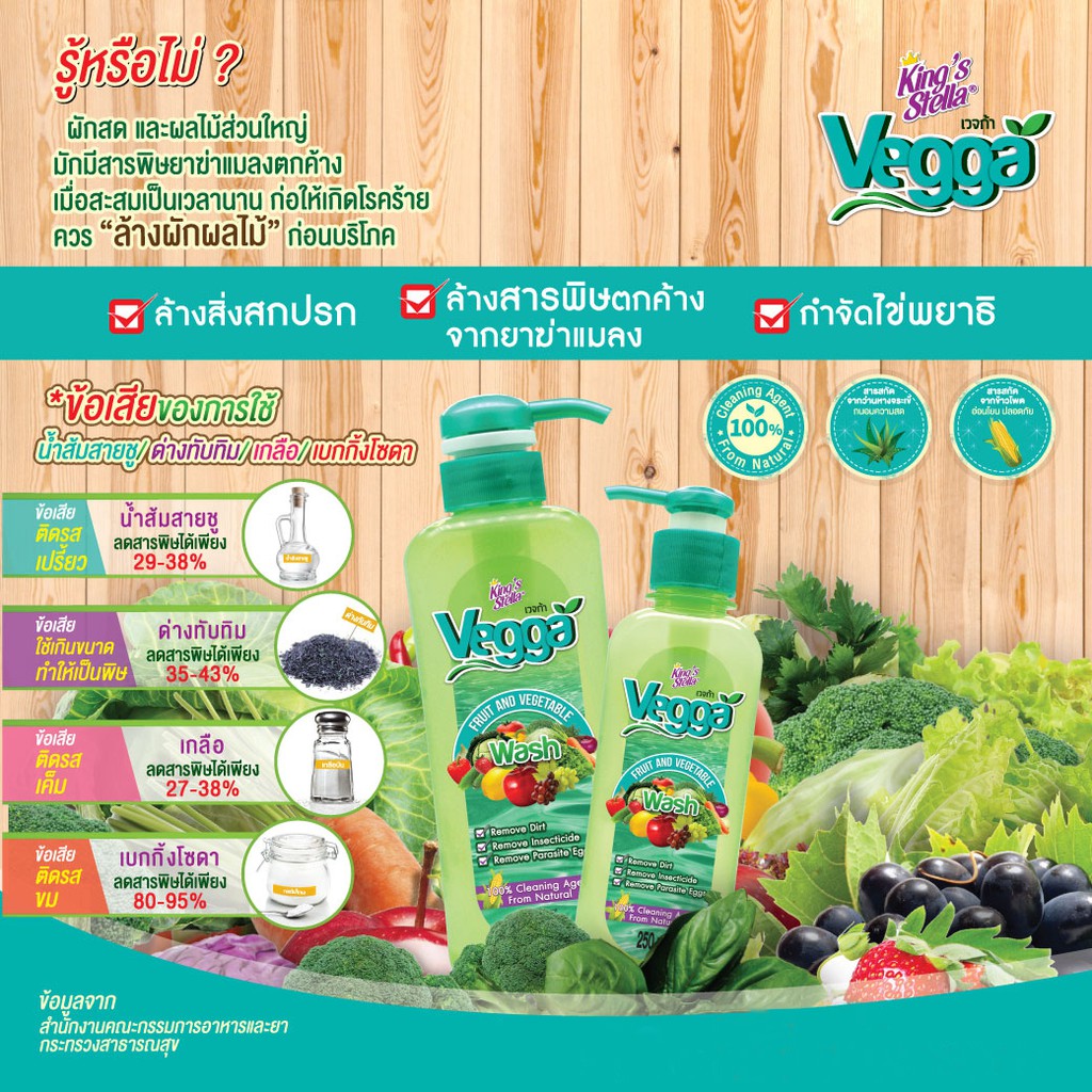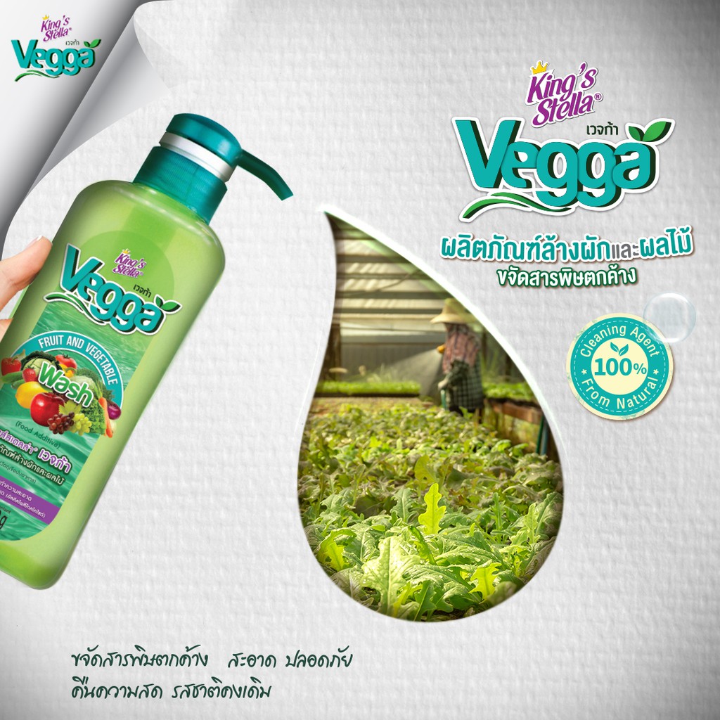 King's Stella (คิงส์สเตลล่า) Vegga เวจก้า น้ำยาล้างผักผลไม้ สูตรธรรมชาติ กำจัดไข่พยาธิ ล้างสารพิษตกค้างได้ถึง 95-99%