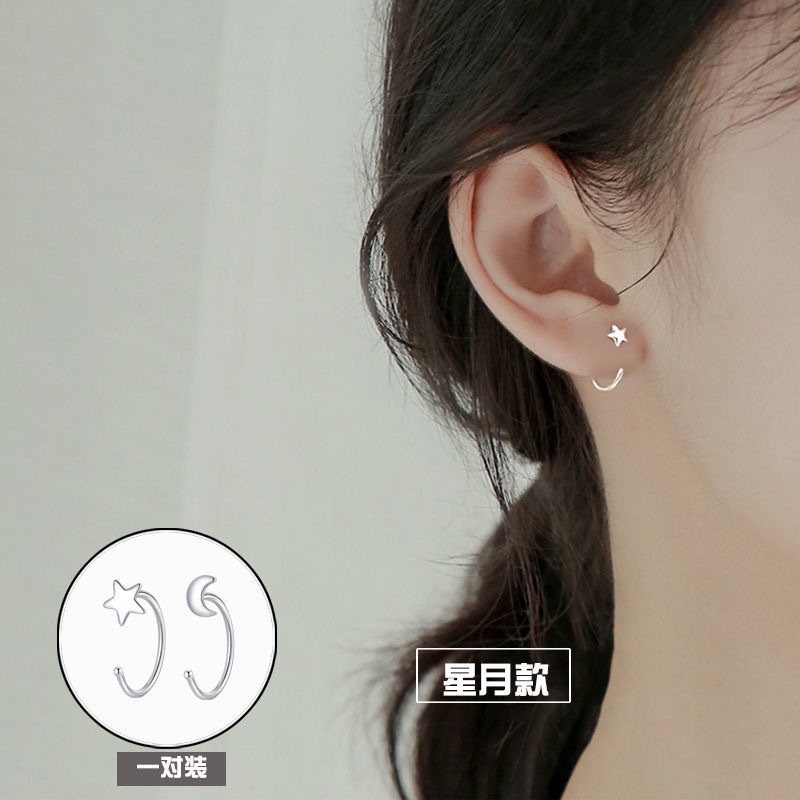 [YY] ใหม่ ต่างหูเข็มเงิน S925 จี้รูปดาว ดวงจันทร์ ทรงกลม ขนาดเล็ก เครื่องประดับสตรี