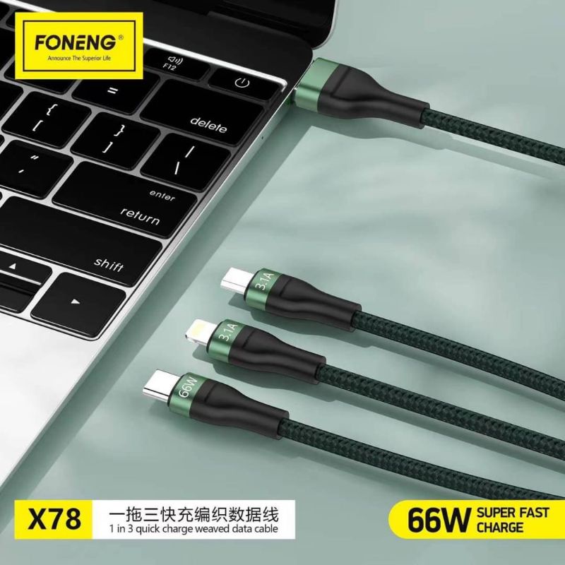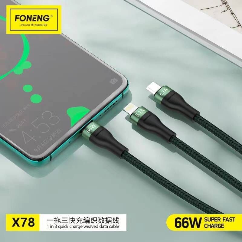 พร้อมส่งจากไทย USB FONENG X78 3in1 66W Super Fast Charge