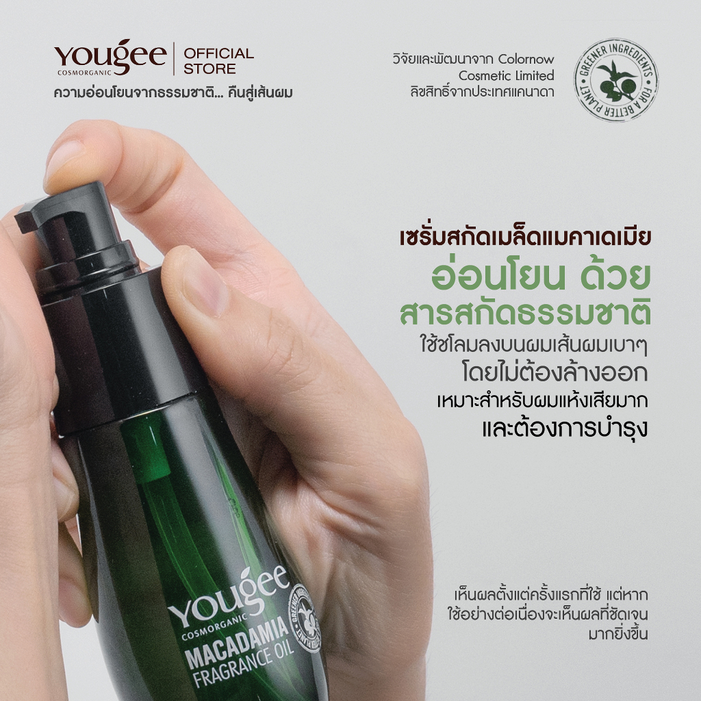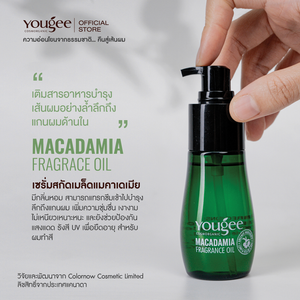 Yougee Macadamia Fragrance Oil 70 ml. ยูจี แมคาเดเมีย ฟราแกรนซ์ ออยล์ เซรั่มผมสกัดเมล็ดแมคาเดเมีย ไม่ต้องล้างออก /64045