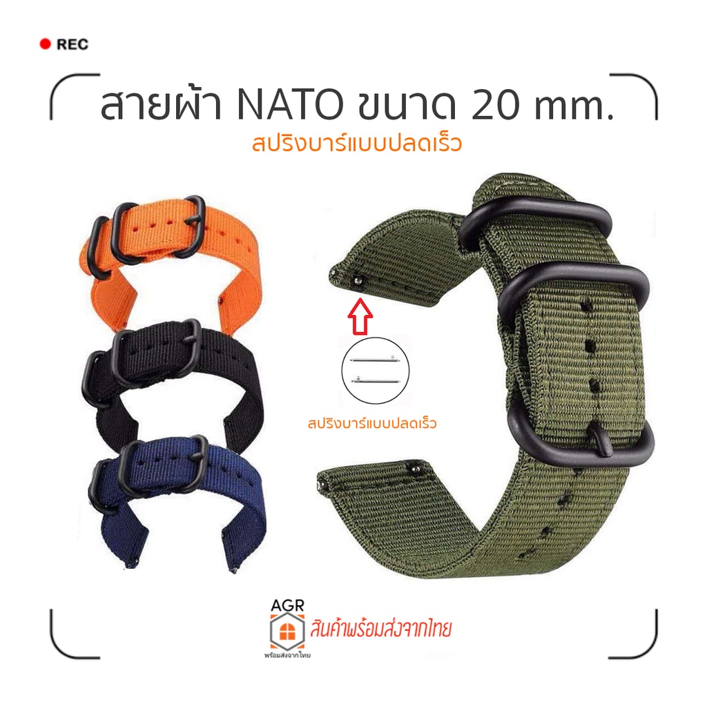 (18) สายผ้า NATO ขนาด 20 mm. Amazfit Bip 3,3 Pro / GTS 4,4 mini / Bip U,U Pro / GTS / GTS 2,2e,2 mini / GTS 3 / Bip S,Li
