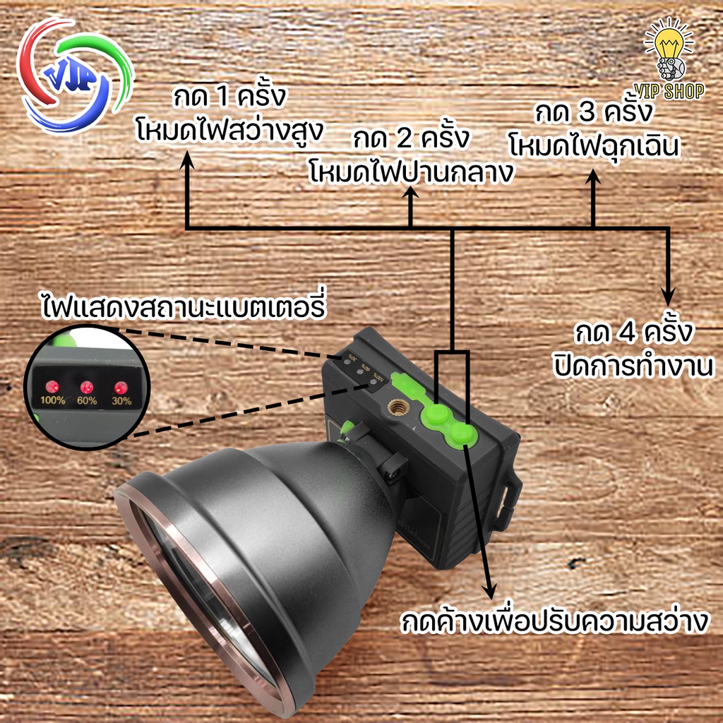 VJP ไฟคาดหัว SUPER BRIGHT 900W แบตเตอรี่ แบตเตอรี่ความจุสูง เหมาะกับเดินป่า แคมป์ปิ้ง ทำงานกลางคืน
