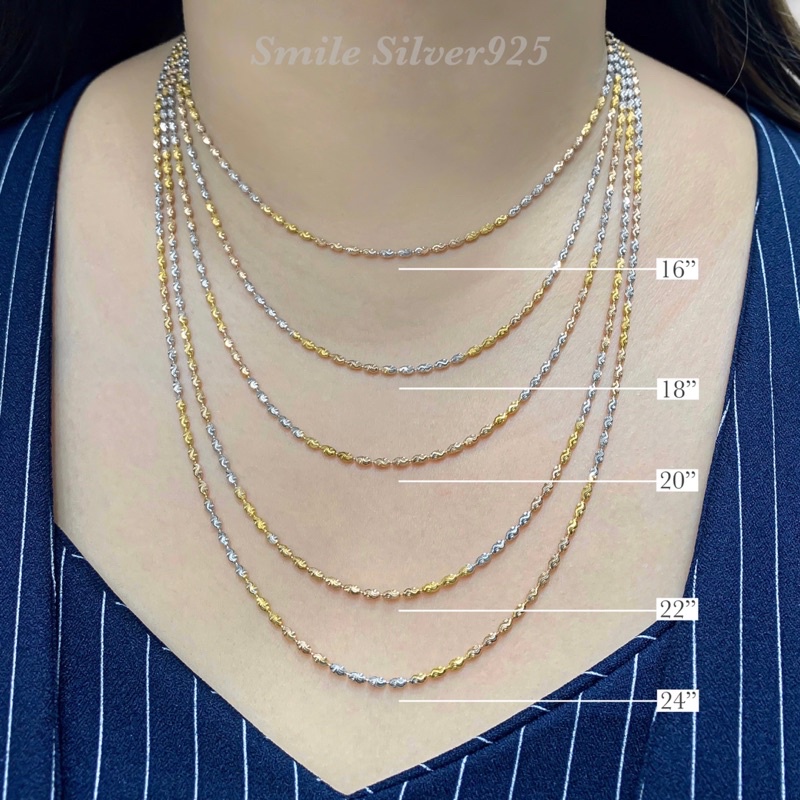 สร้อยคอ ลายเดซี่ 1.4มิล เงินแท้ 92.5% Italy ชุบทอง18k / ชุบทองคำขาว