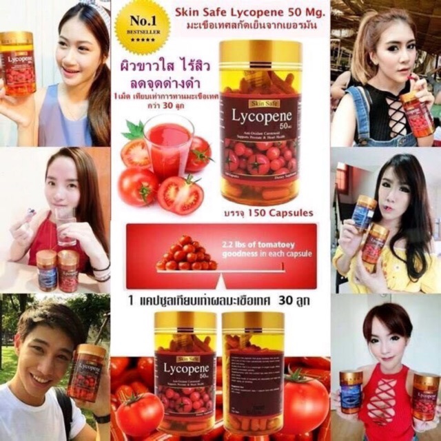 🍅💧Skin Safe Lycopene 50Mg 150 Capsules 🍅ไลโคปีนสกัดเย็น03/2026