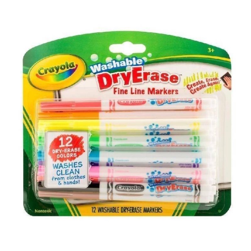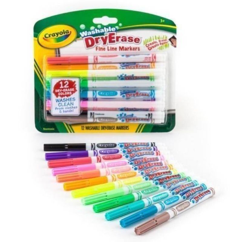 CRAYOLA Washable Dry Erase Fine Line Markers ปากกาไวท์บอร์ดเส้นเล็ก 12แท่ง ไวท์บอร์ด