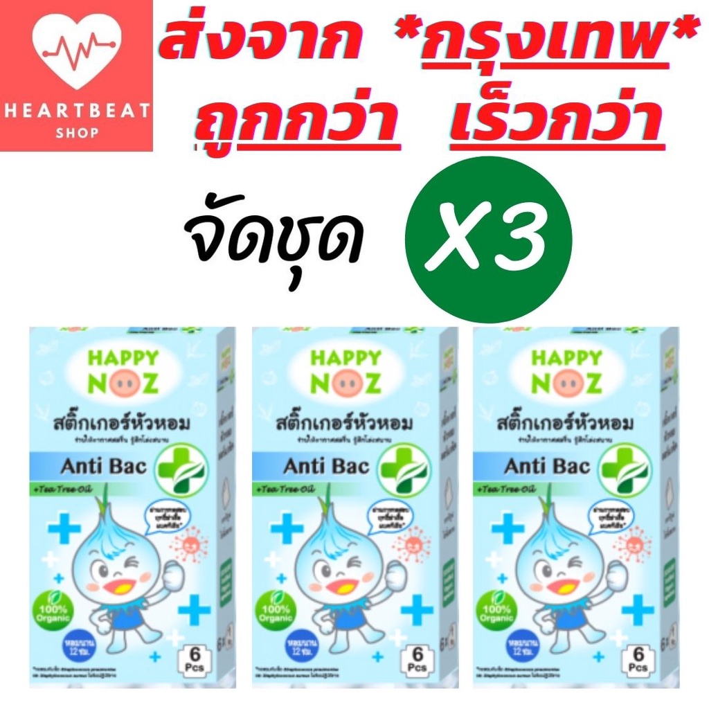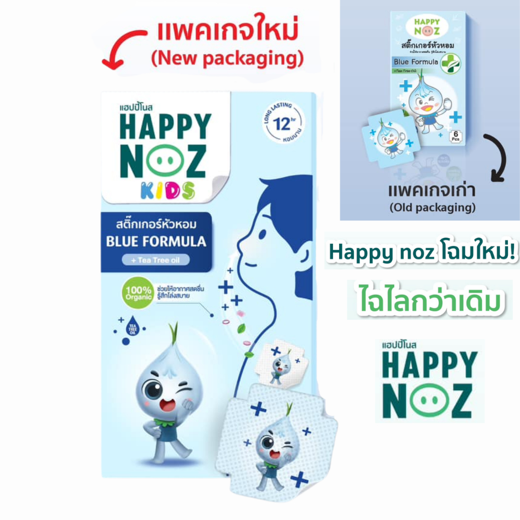 Happy Noz สติ๊กเกอร์หัวหอม แพ็ค 3 กล่อง ออร์แกนิค สีฟ้า ฆ่าเชื้อแบคทีเรีย บรรเทาอาการหวัด แก้คัดจมูก X 3
