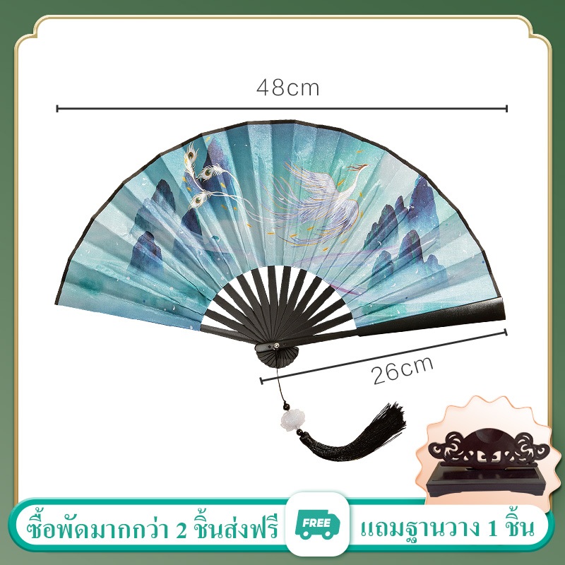พัดจีน 10 นิ้วเนื้อผ้าประดับพู่ ลายสองด้านเหมือนกัน พัดพร้อมส่งจากไทยซื้อ 2 ชิ้นจัดส่งฟรี