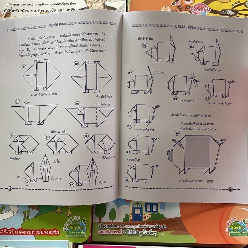 Corcai หนังสือเด็กเสริมพัฒนาการ งานฝีมือ กระดาษพับดาว สนุกกับการพับกระดาษ เครื่องบิน เต่า หมู หมวกเจ้าหญิง ปืน