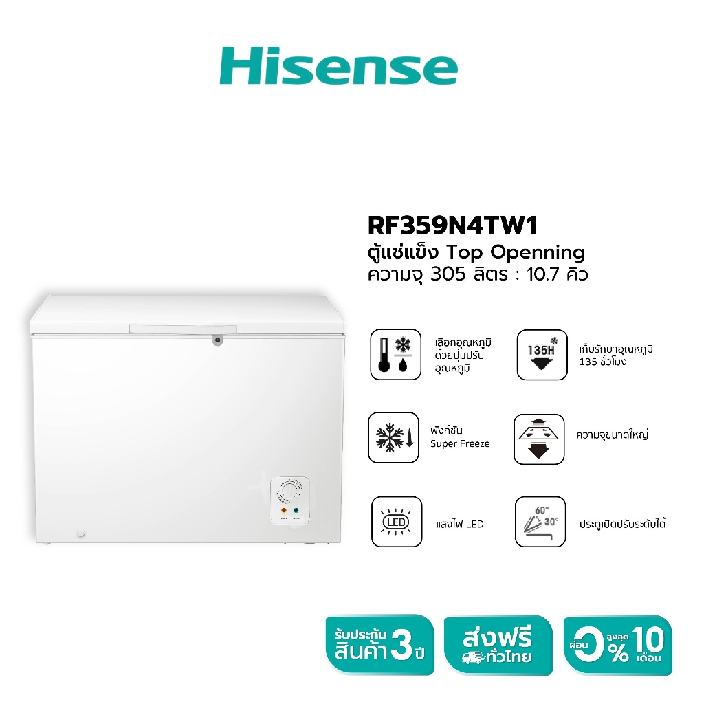 [Presale พร้อมส่ง 8 พค] Hisense ตู้แช่แข็ง Freezer ขนาด 305 ลิตร รุ่น RF359N4TW1 สีขาว