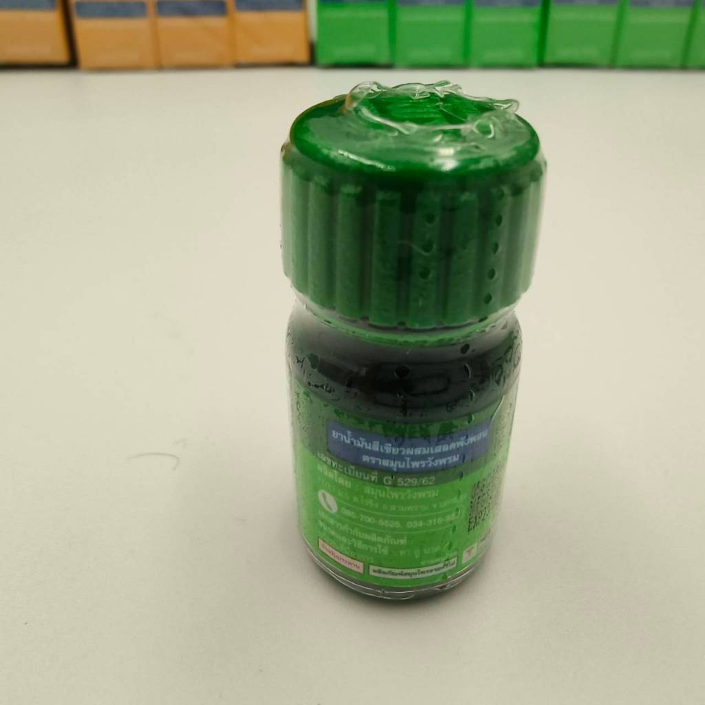 น้ำมันสีเขียวผสมเสลดพังพอน ตราวังพรม 5cc (สูตรเย็น)