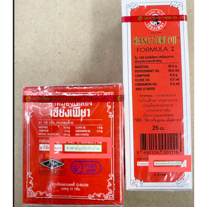 เซียงเพียวอิ๋ว ยาหม่องน้ำสูตร 1 / ยาหม่องน้ำสูตร 2 / ยาหม่องเหลือง / ยาหม่องขาว