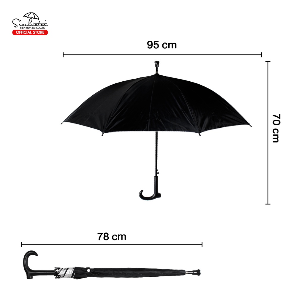 ร่มไม้เท้า Stick Umbrella 24 นิ้ว สีดำ อัตโนมัติเปิด มีจุกกันลื่น ร่มกันแดด ร่มกันฝน กันUV 100%