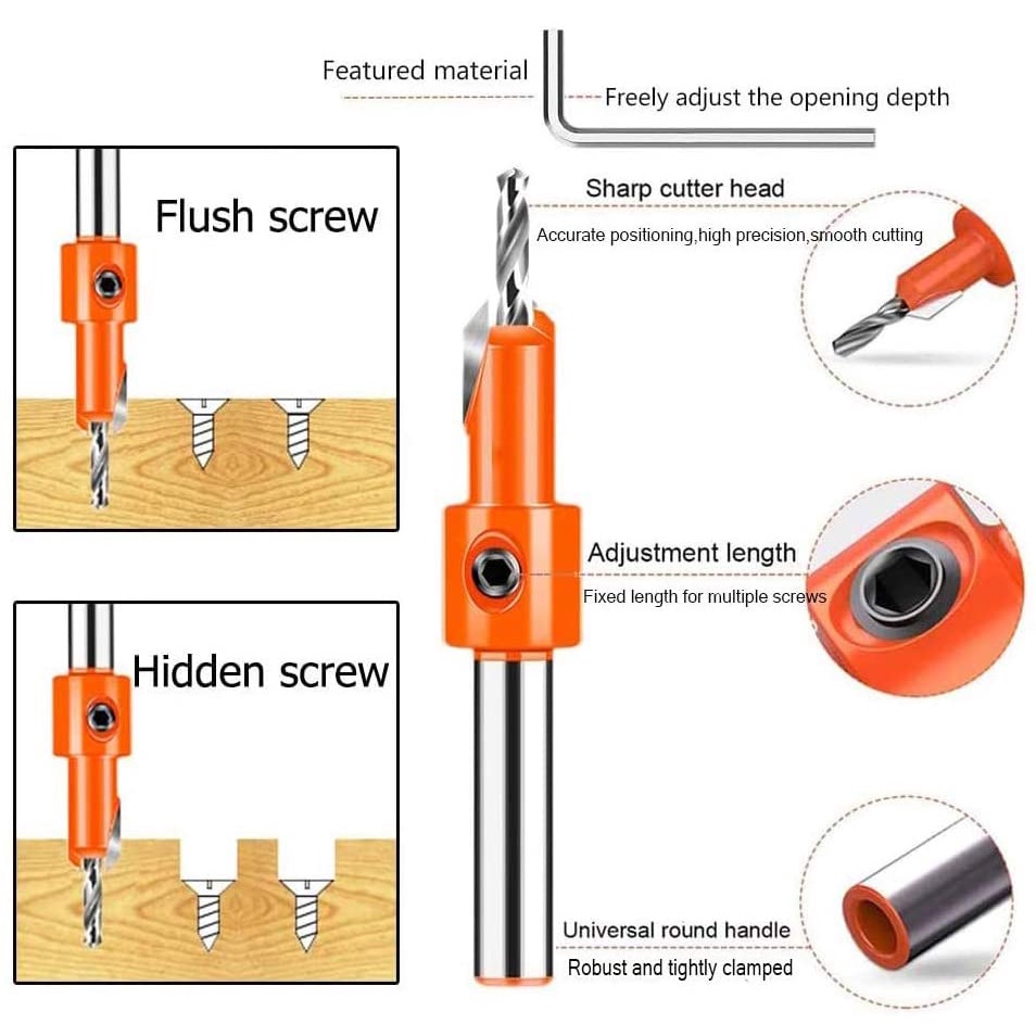 HSS Countersink เจาะ บิตตั้งสกรูงานไม้ Extractor Remon รื้อถอนสำหรับไม้ 8mm Shank
