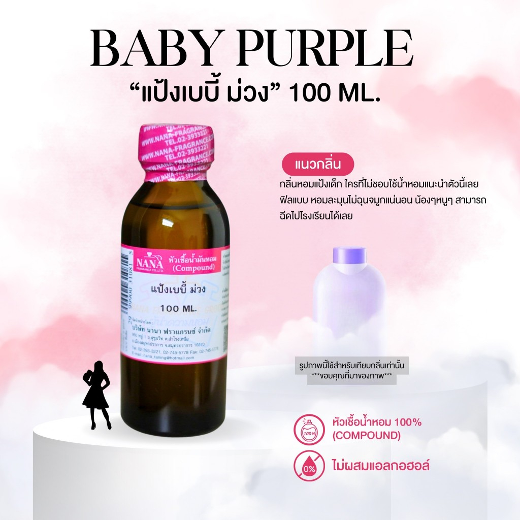 หัวเชื้อน้ำหอม 100% กลิ่นแป้งเบบี้ ม่วง(BABY PURPLE)