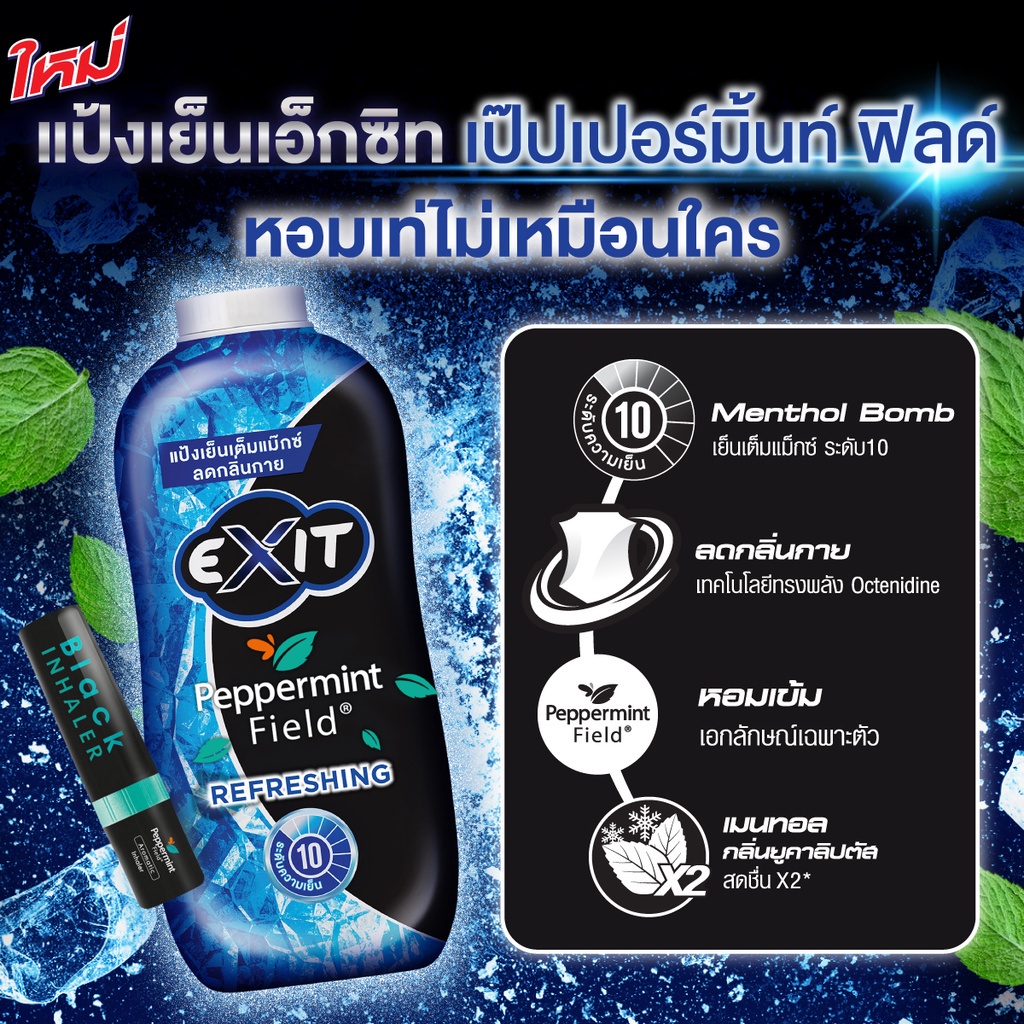Exit เอ็กซิท แป้งเย็น เป๊ปเปอร์มิ้นท์ ฟิลด์ สูตรรีเฟรชชิ่ง