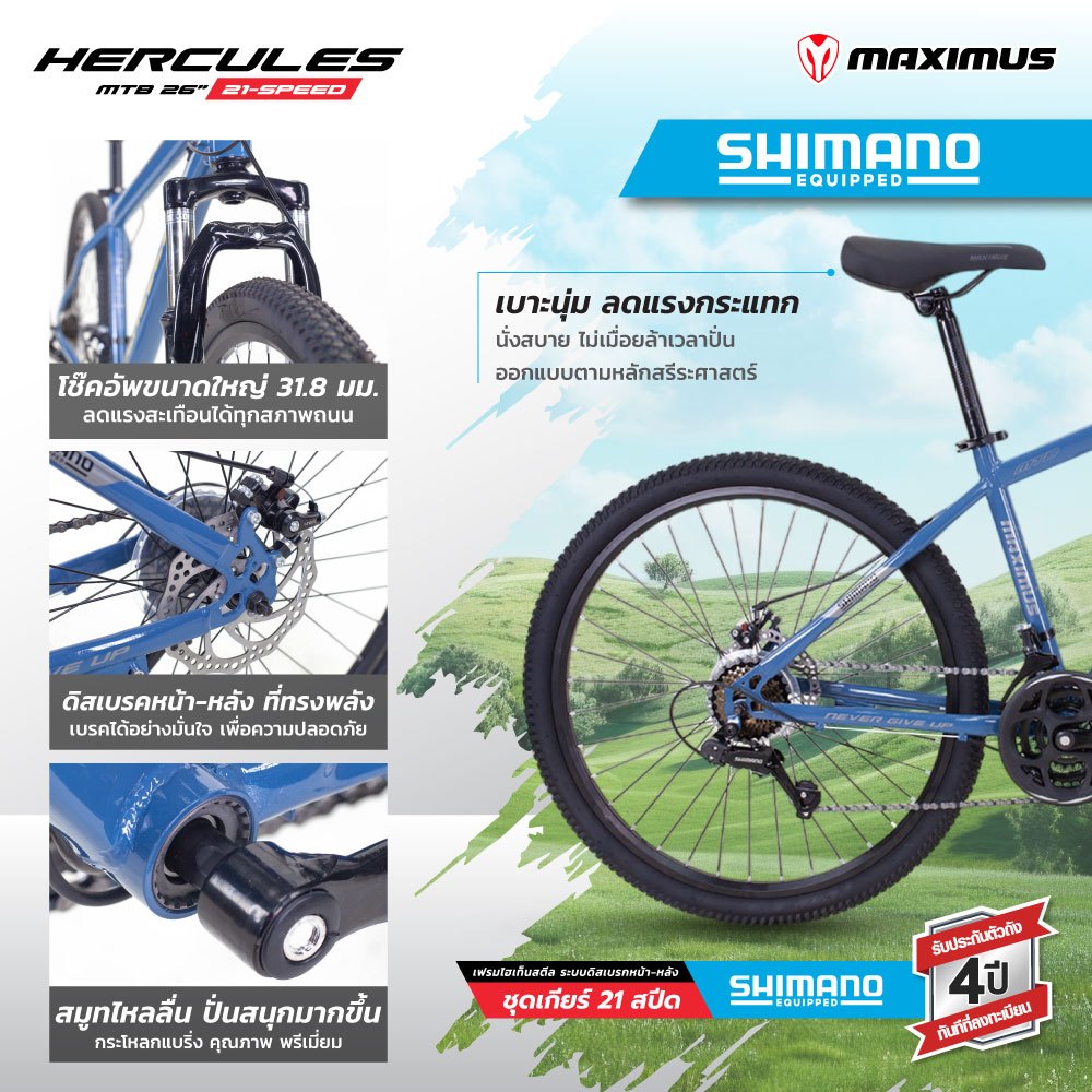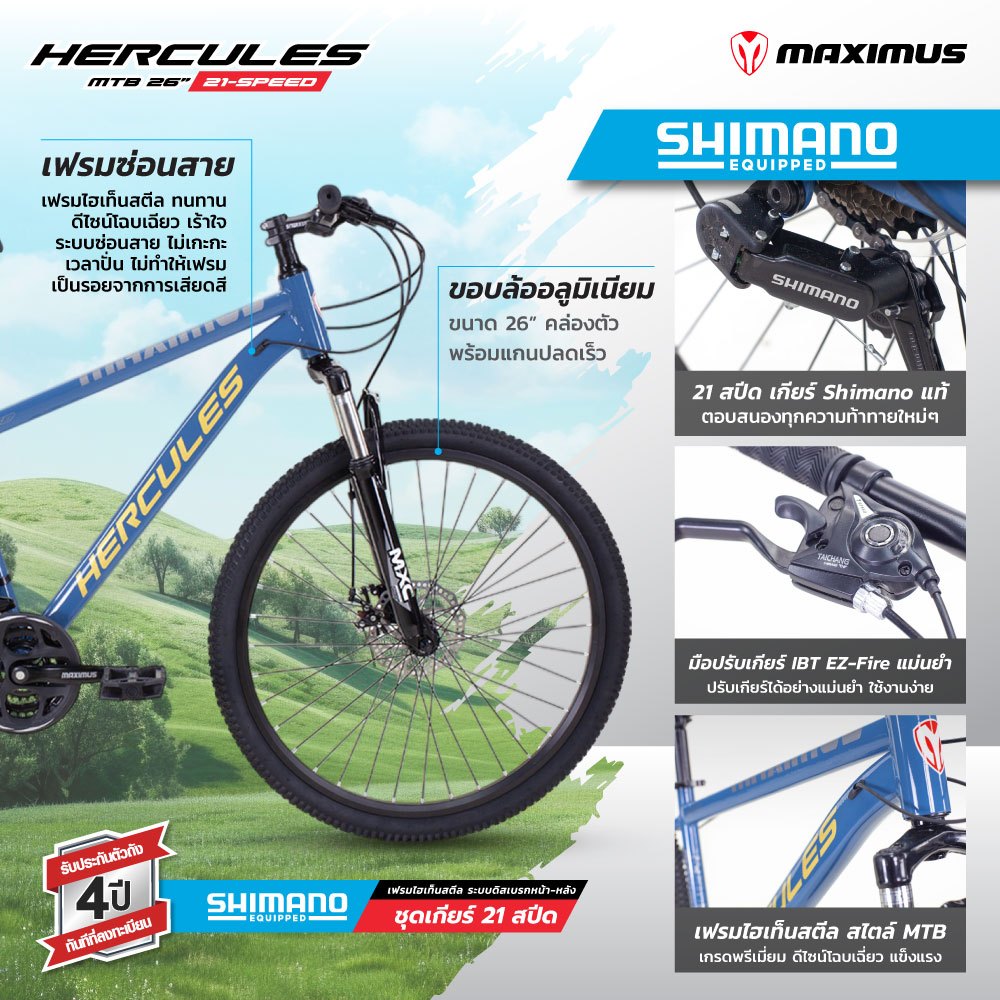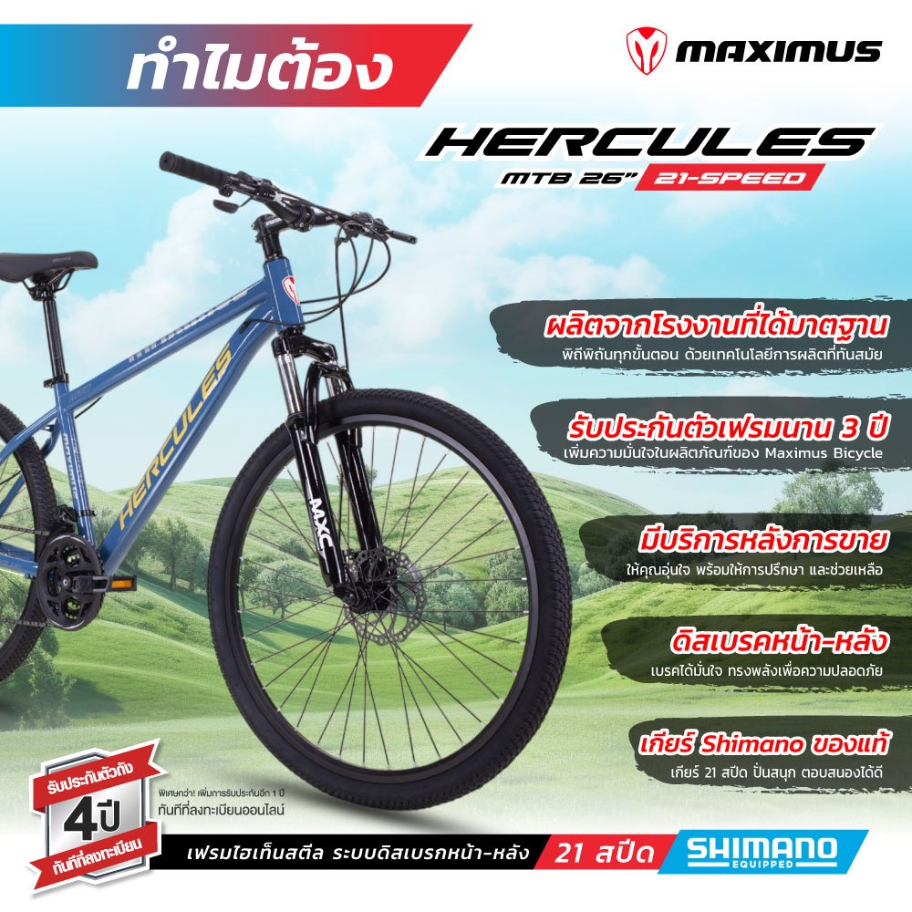 NEW จักรยานเสือภูเขา ชุดเกียร์ SHIMANO 21 สปีด ล้อ26 Maximas รุ่น HERCULES