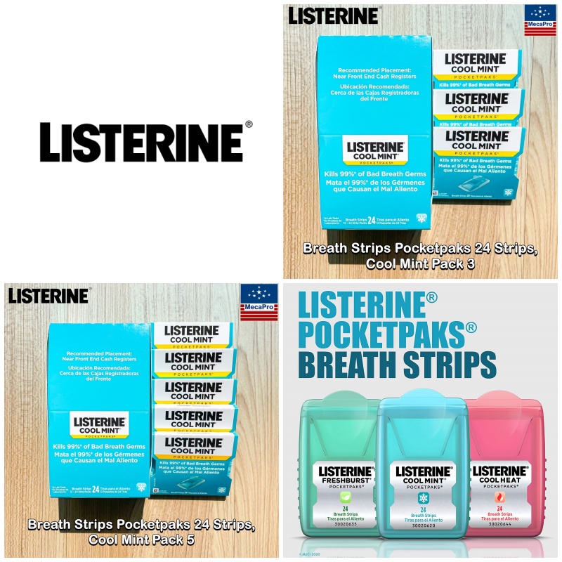 Listerine® Breath Strips Pocketpaks 24 Strips Pack 3 or Pack 5 ลิสเตอรีน แผ่นแปะลิ้นระงับกลิ่นปาก ลดกลิ่นปาก