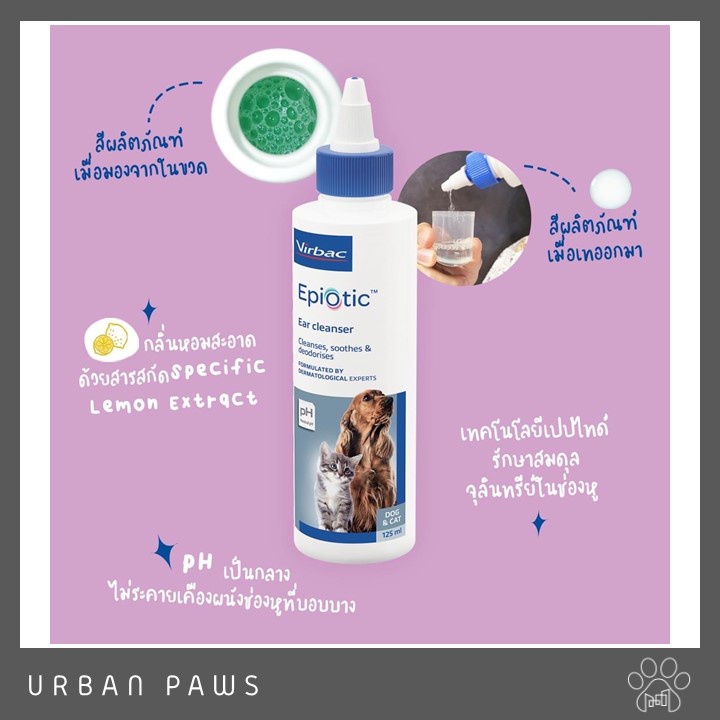[EXP 03/27] Virbac Epiotic - Ear Cleanser ผลิตภัณฑ์ทำความสะอาดช่องหูสูตรไมเซลลาร์ สำหรับสุนัขและแมว ขนาด 125 ml