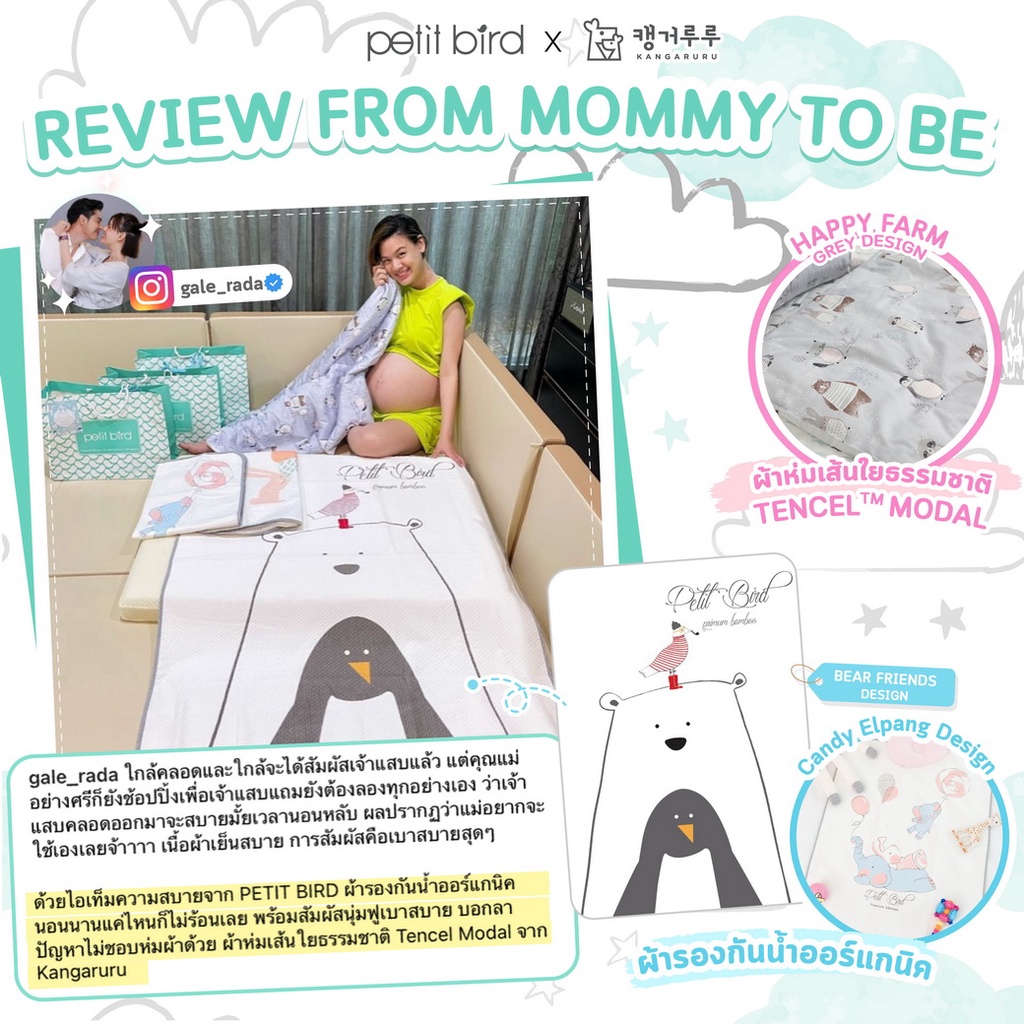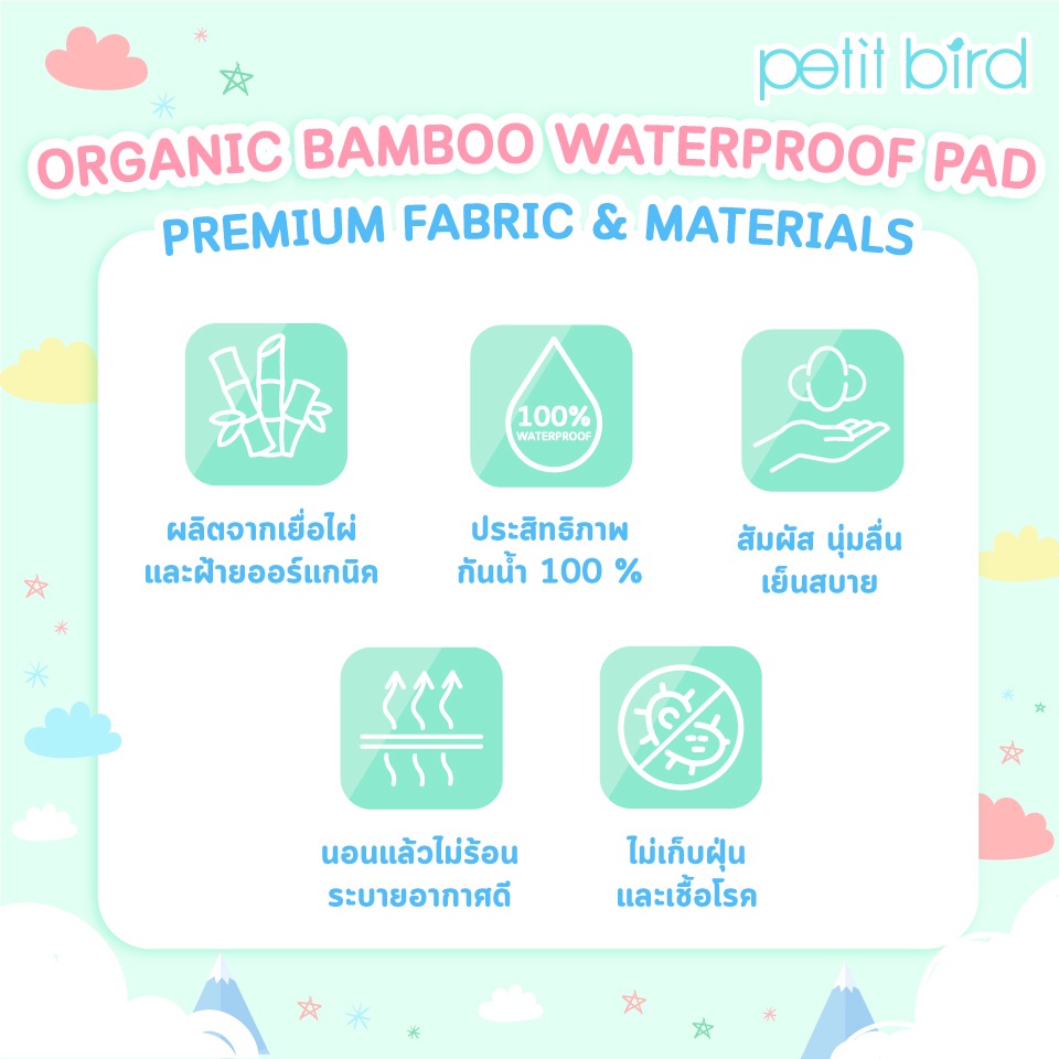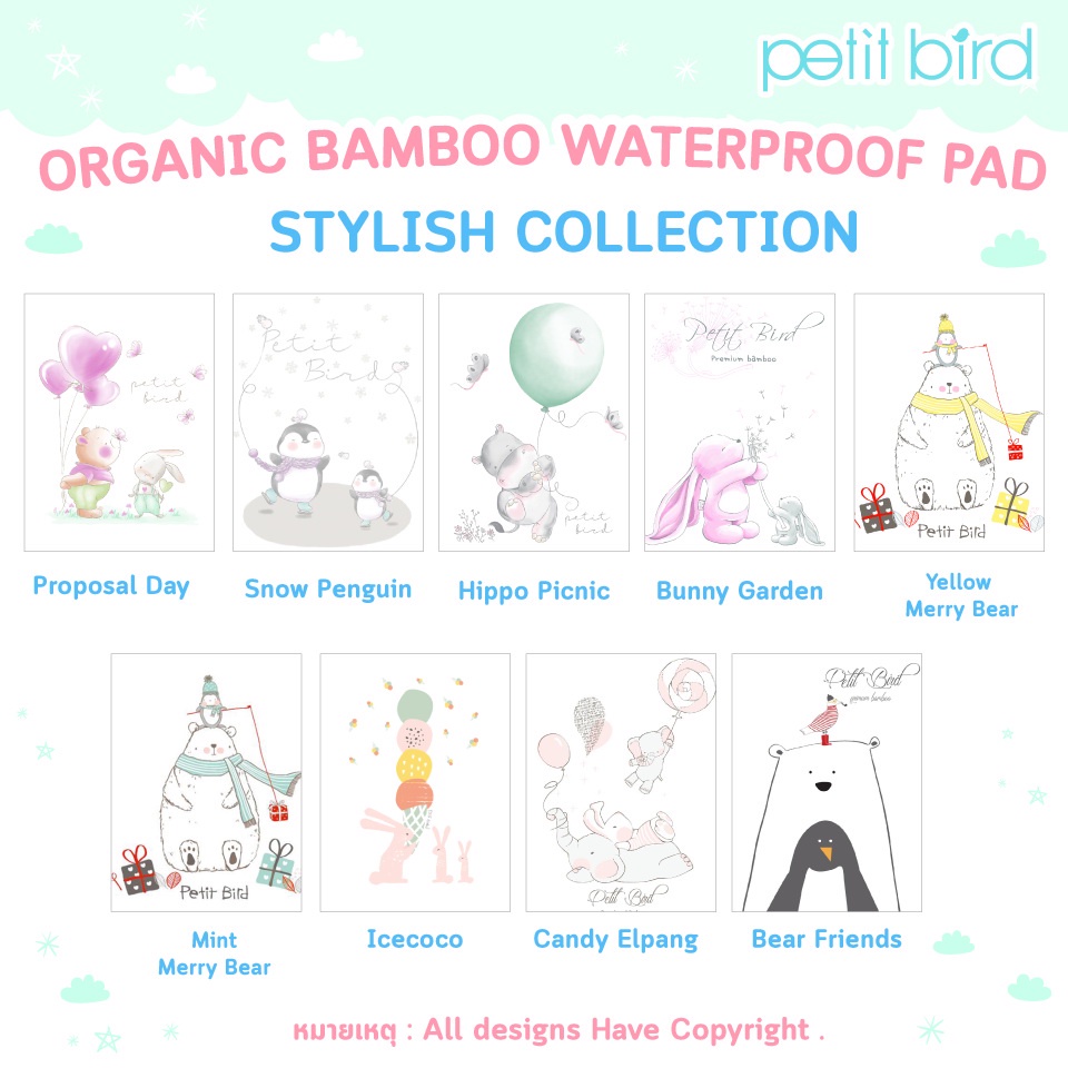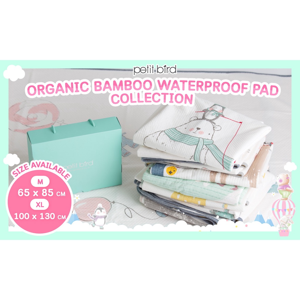 PETIT BIRD ORGANIC BAMBOO WATERPROOF PAD_ ผ้ารองกันน้ำออร์เเกนิครุ่นเยื่อไผ่ เเบรนด์ PETIT BIRD _ YELLOW MERRY BEAR