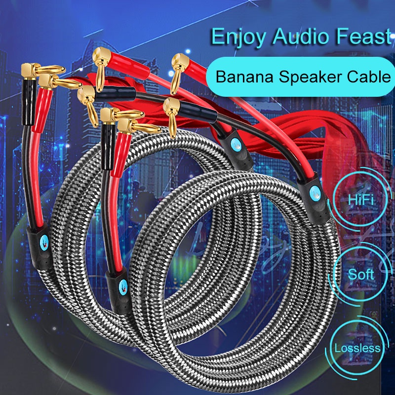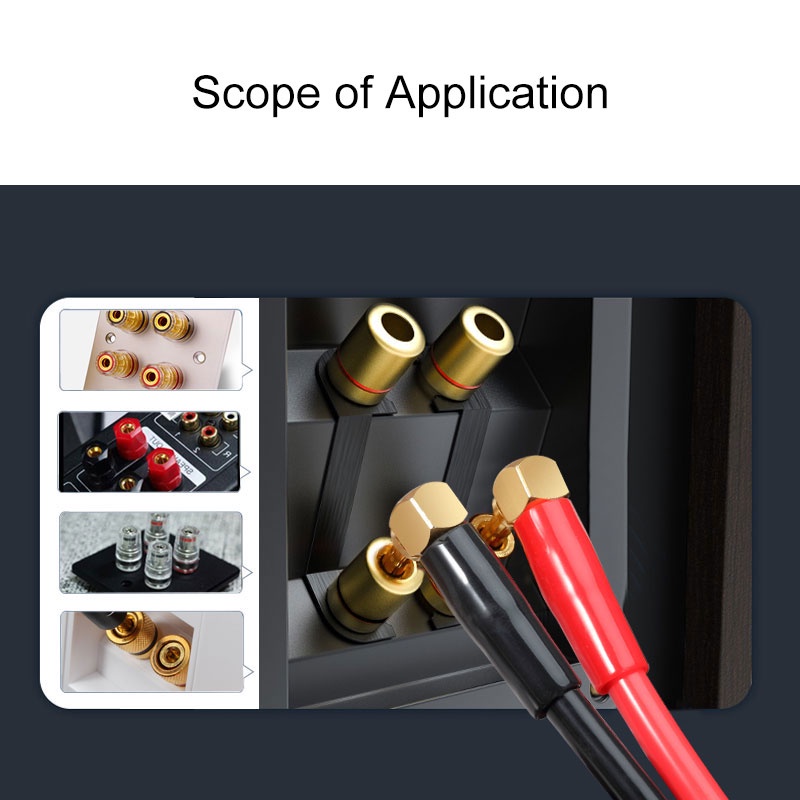 Golley LION ปลั๊กกล้วยเชื่อมต่อสายลําโพง HI-FI ทองแดงบริสุทธิ์ มุมฉาก ประเภท L สีแดง และสีดํา สําหรับสายลําโพงเสียง 2 ชิ้น 1 คู่