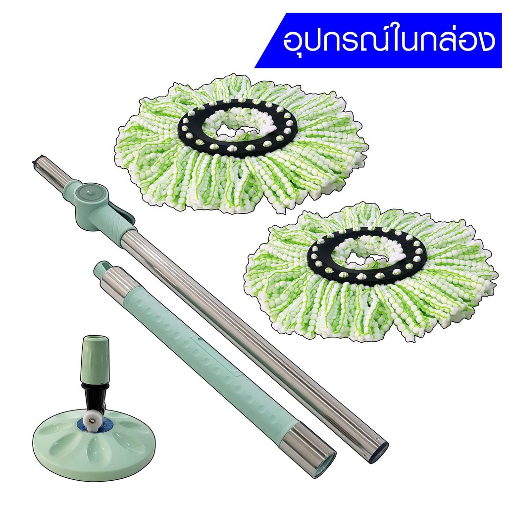 SKG ชุดไม้ถููพื้น ถังถูพื้น SK-6632 ชุดถังปั่นไม้ม็อบ ชุดถังปั่นแห้ง-ปั่นน้ำ ความจุ 8 ลิตร ถังสแตนเลส แถมฟรีผ้าถู2ชิ้น