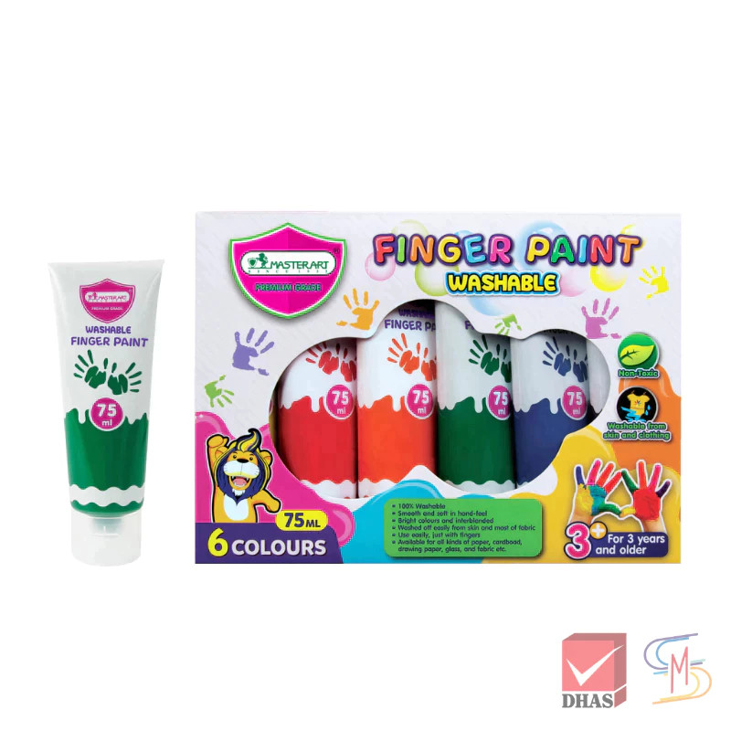 Master Art มาสเตอร์อาร์ต สีทามือ ฟิงเกอร์เพ้นท์ สีปลอดสารพิษสำหรับเด็ก ชนิดหลอดบีบ 75 มล. 6 สี