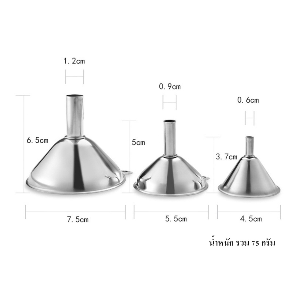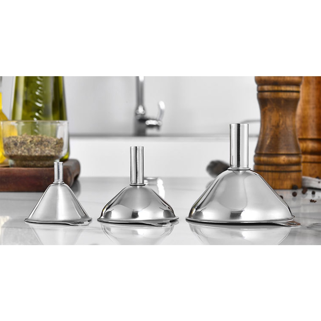 HOMEBERG 3ชิ้น ชุดกรวยสแตนเลส พร้อมพวงล๊อค กรวย กรวยกรอกน้ำ อาหาร กรวยกรอกน้ำ ของเหลว สแตนเลส 430