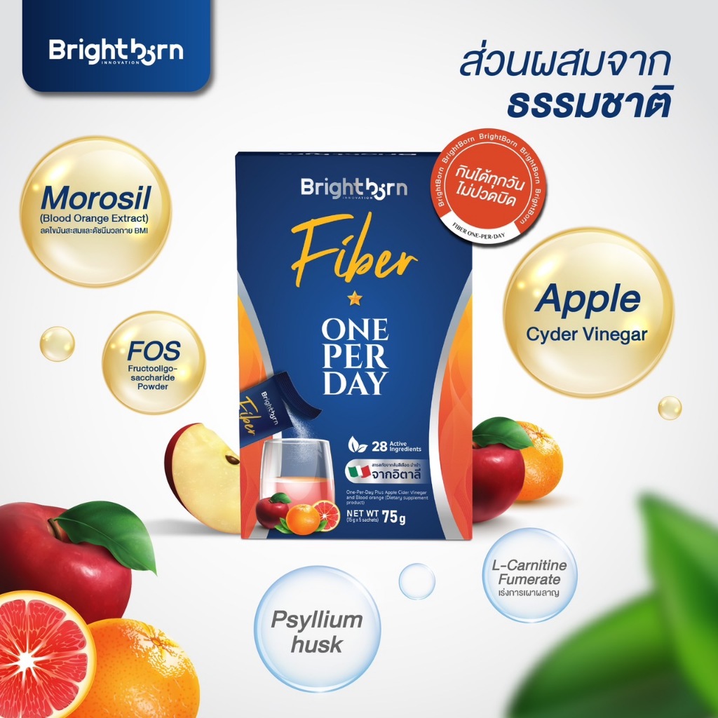ไฟเบอร์ 2 กล่อง | Brightborn Fiber 10,000mg ไบร์ทบอร์น ช่วยขับถ่าย ไม่ปวดท้อง สำหรับ ดีท็อกซ์ ลำไส้