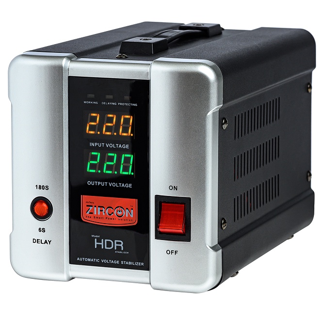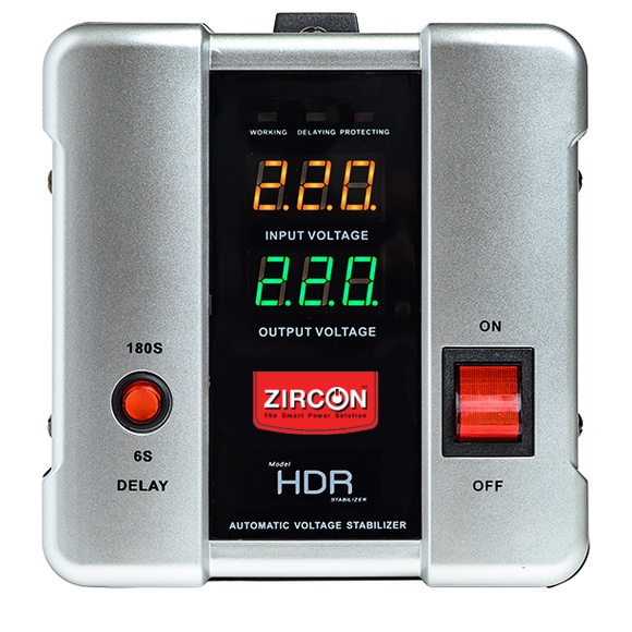 ZIRCON รุ่น HDRเครื่องปรับแรงดันไฟฟ้า(ป้องกันไฟกระชากไม่สำรองไฟ)อัตโนมัติ(มี 5 รุ่น) (6 ช่องเสียบ) ควบคุมแรงดันไฟฟ้าLCD