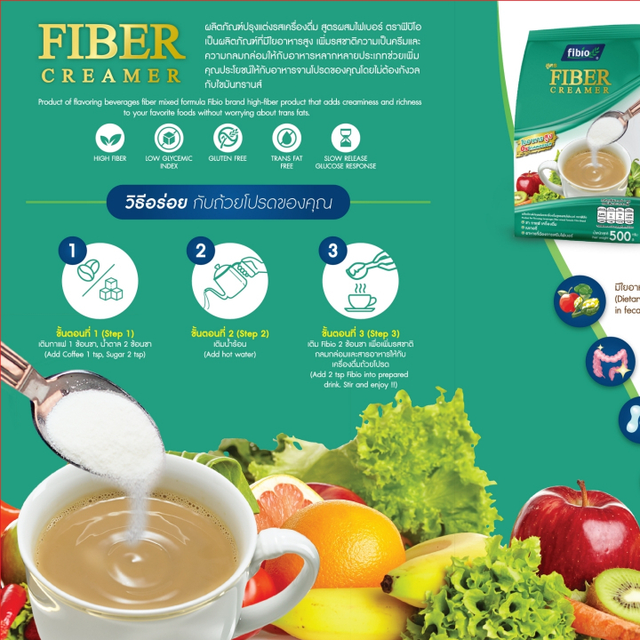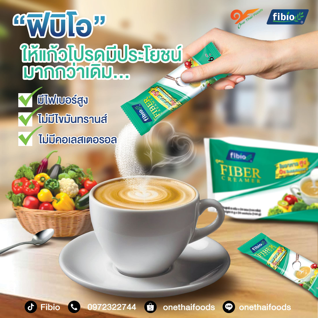 ครีมนมไฟเบอร์ ตรา ฟิบิโอ (Fibio) ใน 1 ถุง มีซองขนาด 6 กรัม x 24 ซอง ใช้แทนครีมเทียม คีโตทานได้