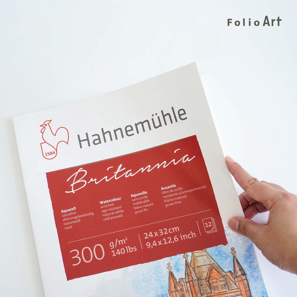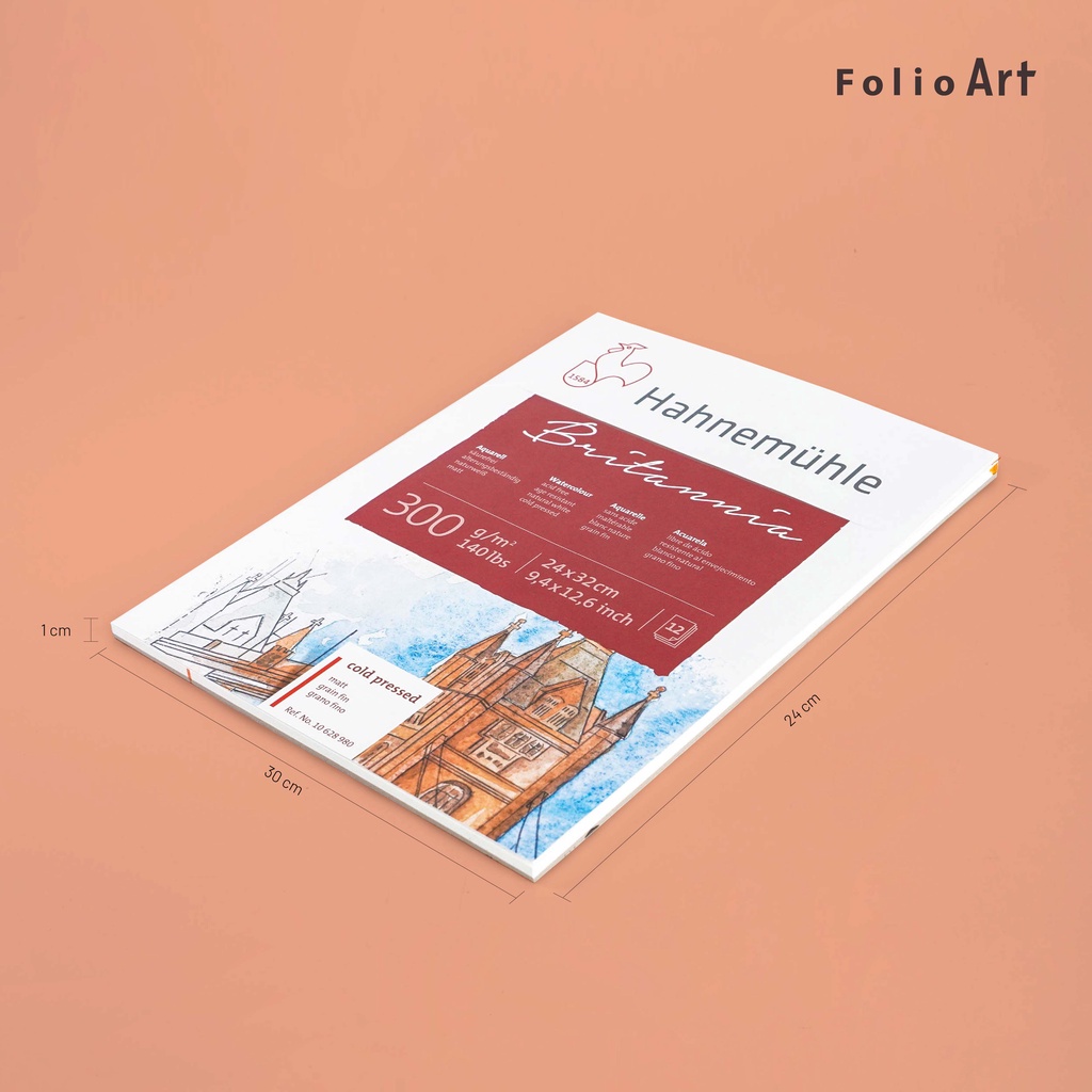 FOLIO ART : กระดาษวาดภาพ Hahnemühle paper pad รุ่น Britannia 300 แกรม เล่มฉีก ขนาด 24x32 cm. 12 แผ่น 8570125