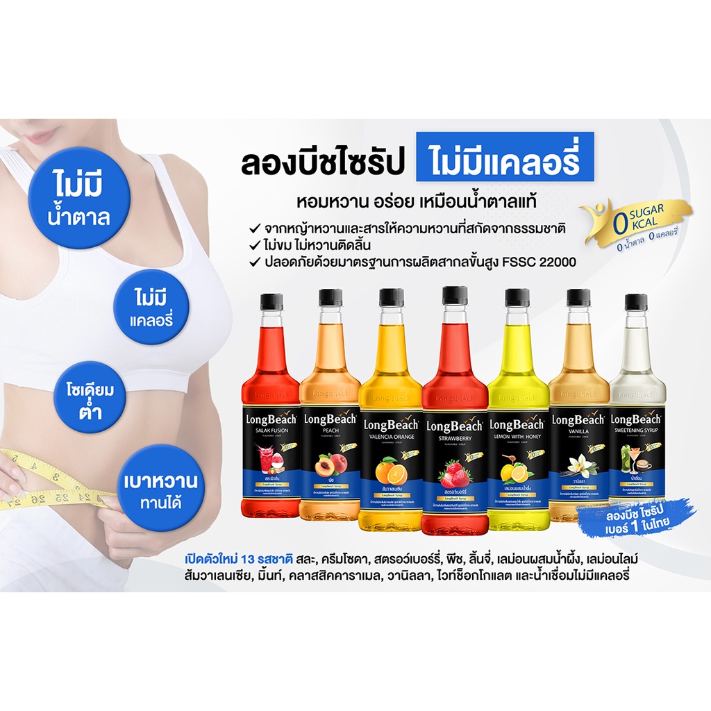 ลองบีชไซรัปไม่มีแคลอรี่มิ้นท์ (740 ml) LongBeach Zero Calories Mint Syrup ไม่มีน้ำตาล/ ไม่มีแคลอรี่/ 0 Kcal