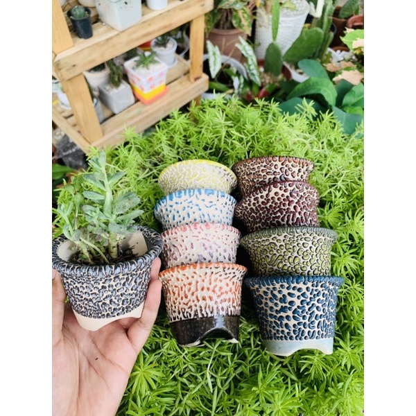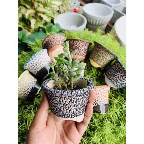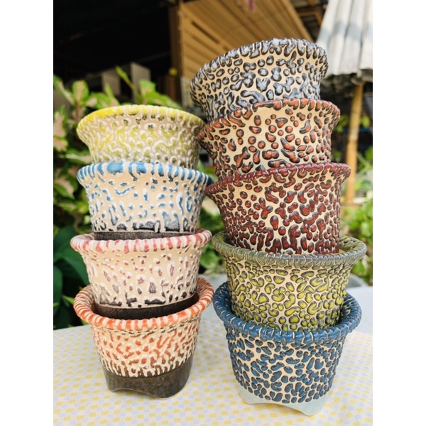 กระถางเซรามิค ปากแตร3.2นิ้ว(ขาตรง) ลาวาทูโทนและลาวาทูโทนพื้นดำ