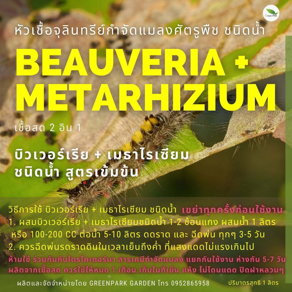บิวเวอร์เรีย เมธาไรเซียม ขนาด 1 ลิตร Green Park กำจัด เพลี้ย แมลง หนอน ไร ด้วง อินทรีย์ชีวภาพ ใช้ได้ทุกพืช บอนสี