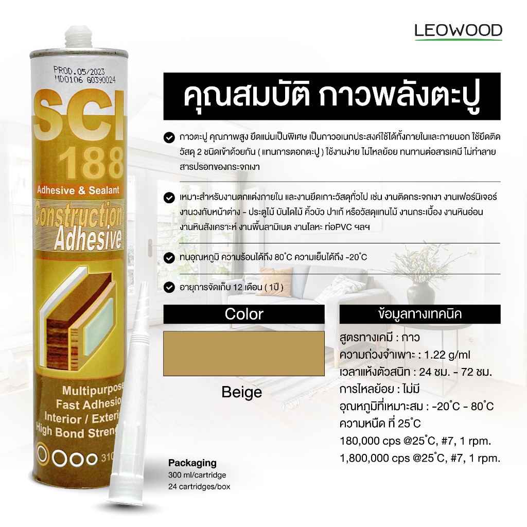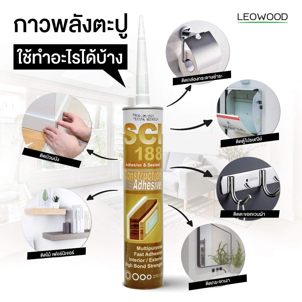 Leowood กาวตะปู กาวพลังตะปู สำหรับติดวัสดุ 300 ml.