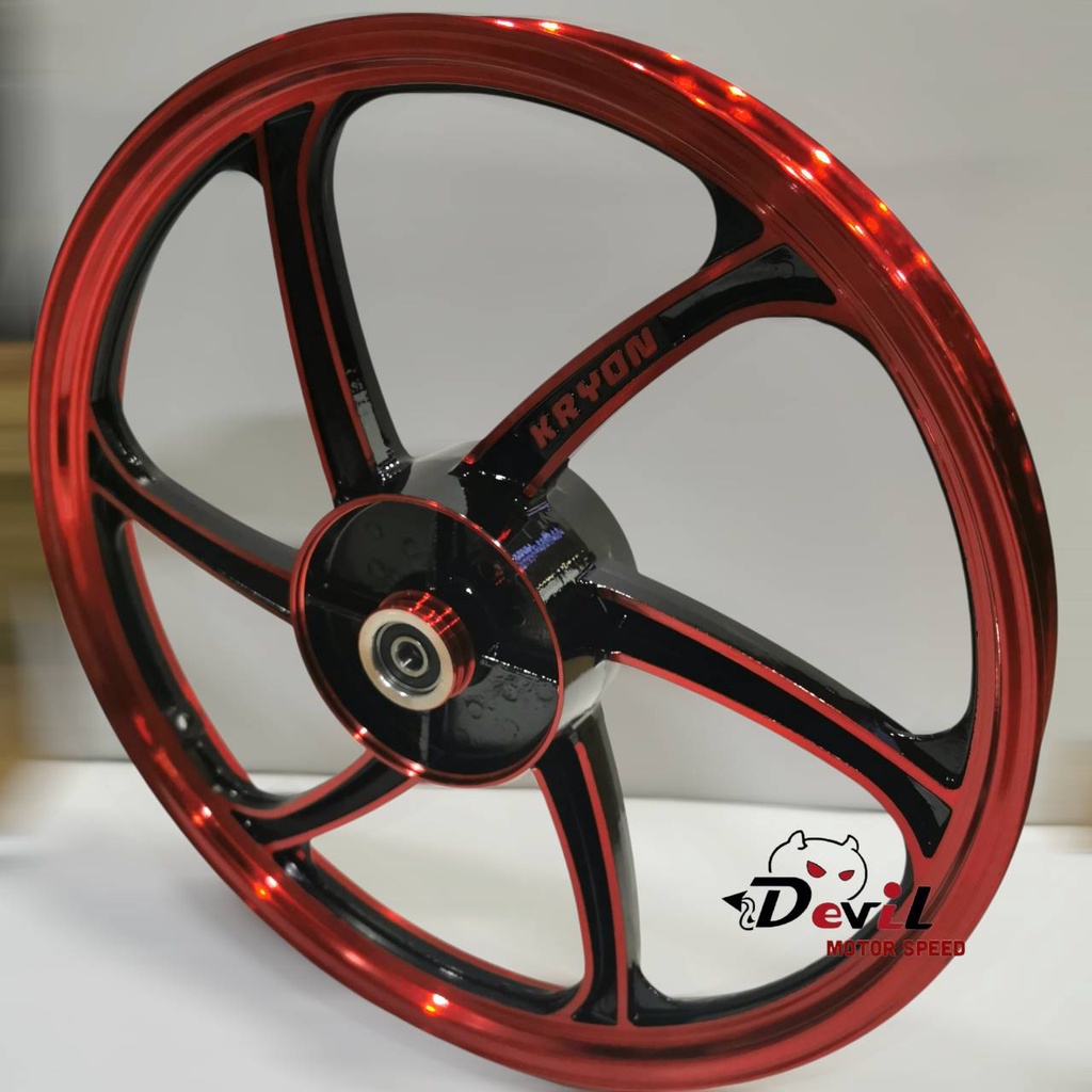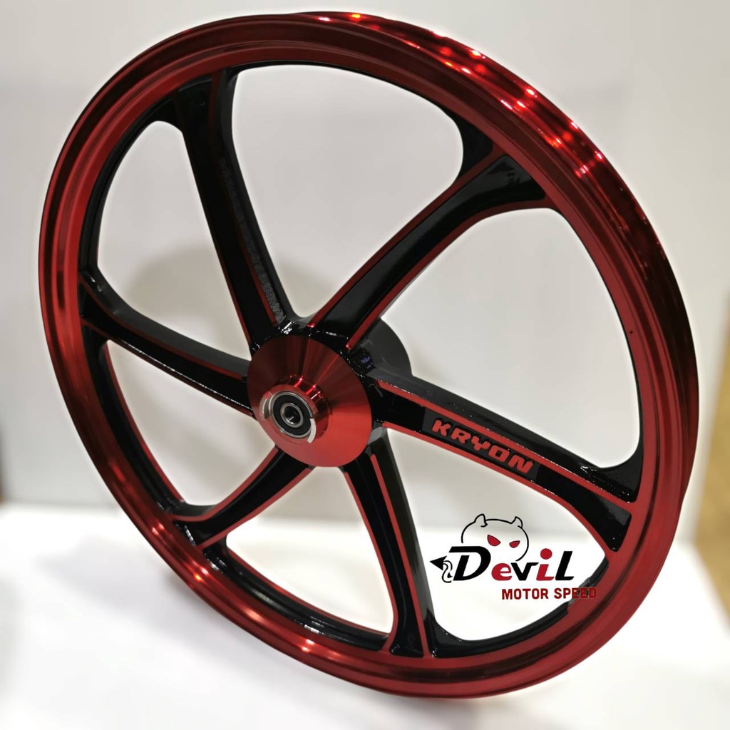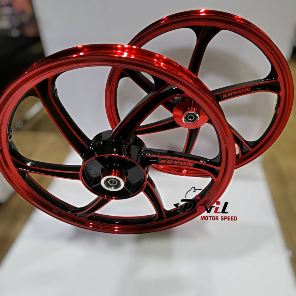 ล้อแม็ก เวฟ110i W110i ,W125iปลาวาฬ, 6ก้าน ทูโทน 1.40x17 หน้าดิสหลังดั้ม แถมลูกปืน+บูชกลางล้อ ขายเป็นคู่ - สีแดงปัดดำ