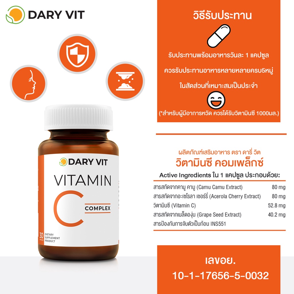 แพ็คคู่ 2 กระปุก Dary Vit Vitamin B Complex + Vitamin C Complex ขนาด 30 แคปซูล/กระปุก
