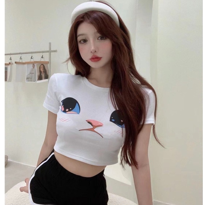 【WJZ】 เสื้อยืดแขนสั้นพิมพ์ลายการ์ตูนสไตล์เกาหลีสำหรับผู้หญิง【6738】